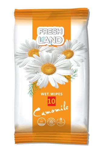 Гигиенические влажные салфетки Freshland 10 шт., «Ромашка» (х1/84)