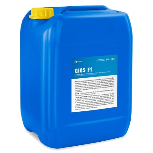 GIOS F1 - щелочное пенное моющее средство для удаления органических загрязнений с поверхностей полов, стен, технологического оборудования, инвентаря, тары и других поверхностей, устойчивых к воздействию щелочи, на предприятиях пищевой промышленности. Эффективно удаляет органические загрязнения различного типа (масложировые, протеиновые, белковые).