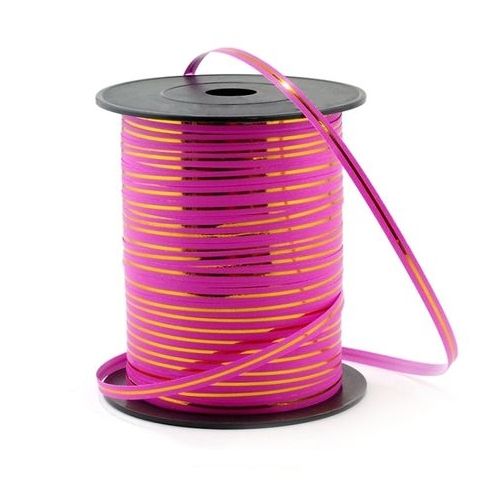 Лента упаковочная 228мх5мм (Фуксия с золотой полосой) (х1/5) Китай