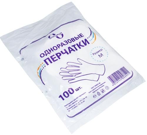 Перчатки ПЭ одноразовые M Оптимум (х100/10000)