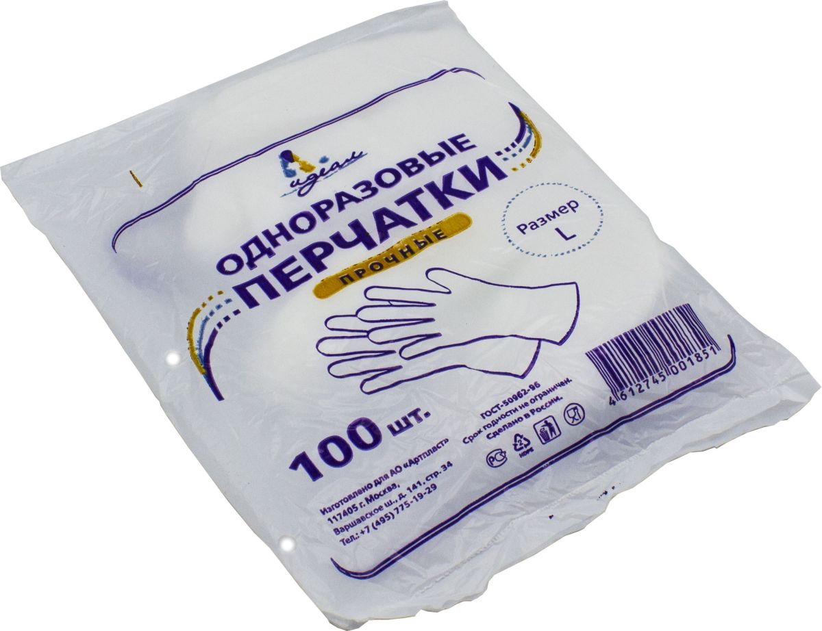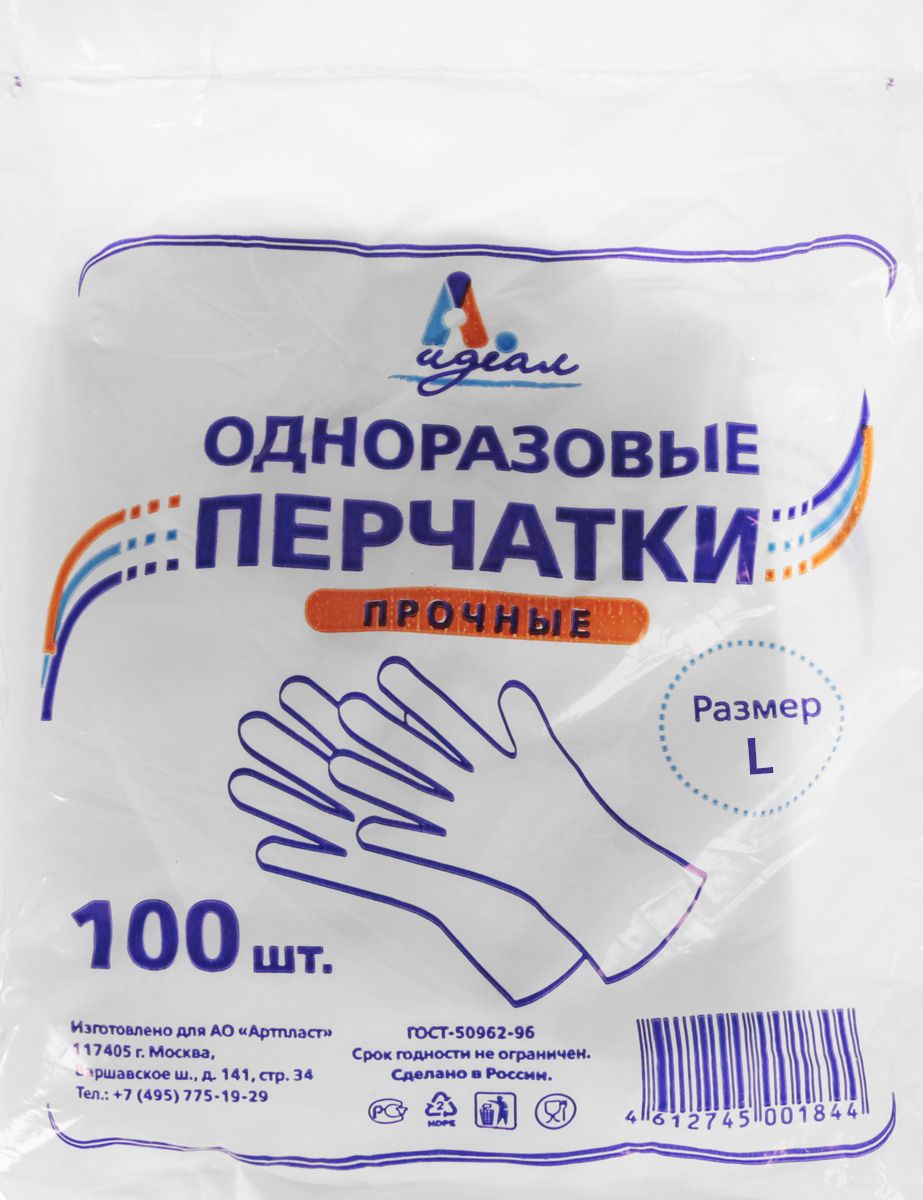 Перчатки ПЭ одноразовые прочные (L) Идеал (х100/10000)