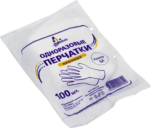 Перчатки ПЭ одноразовые прочные (M) Идеал (х100/10000)