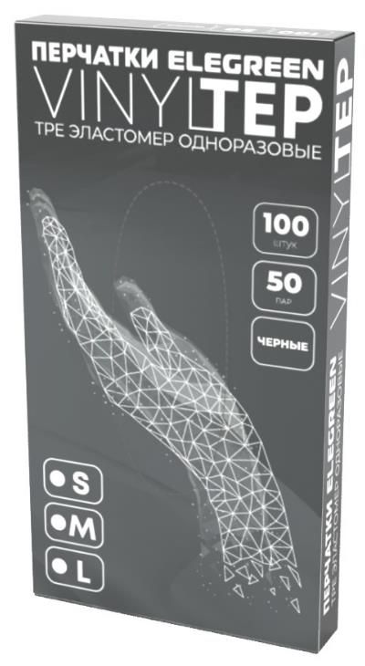 Перчатки смотровые из эластомера цвет Черный (M) (х100/3600)