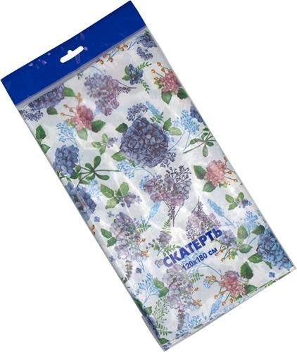Скатерть ПВД 180х120см, 35мкм (Гортензия) Интерпак (х1/50)