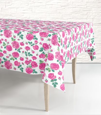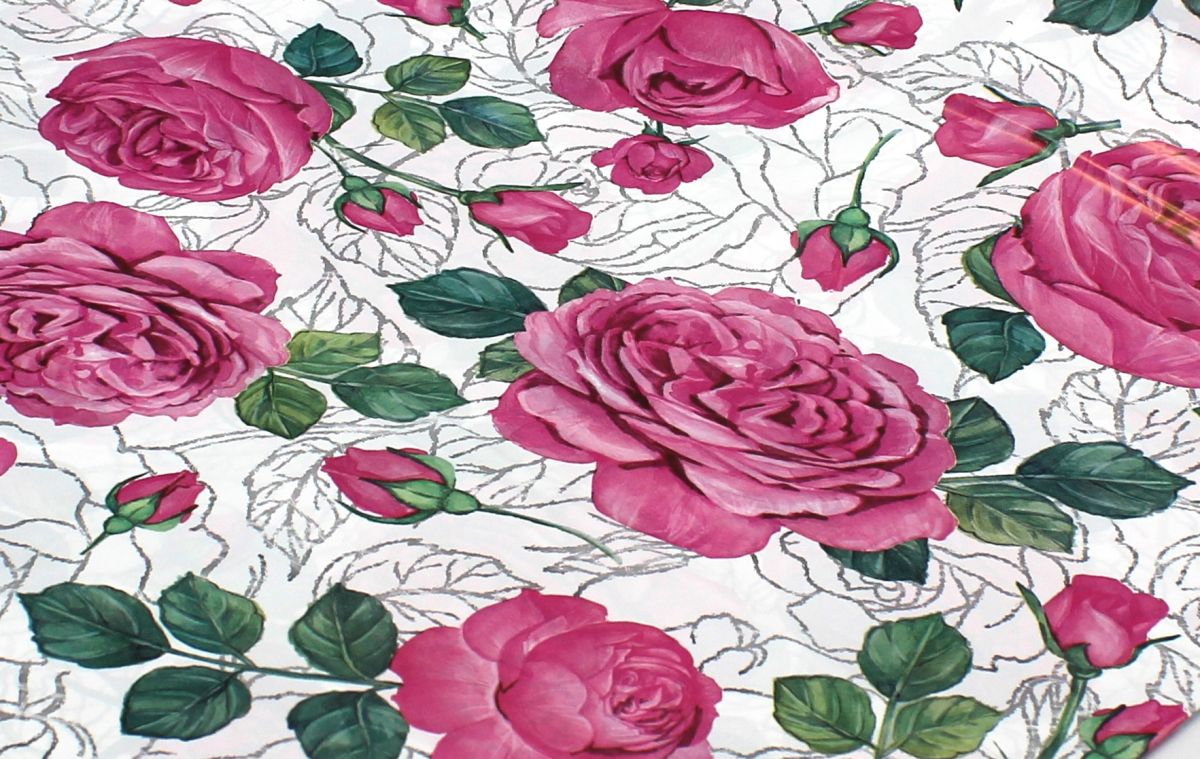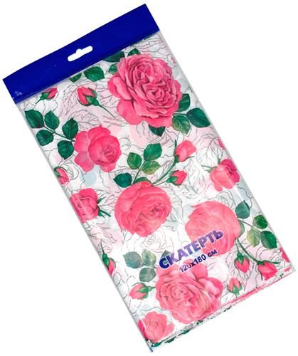 Скатерть ПВД 180х120см, 35мкм (Розовые розы) Интерпак (х1/50)
