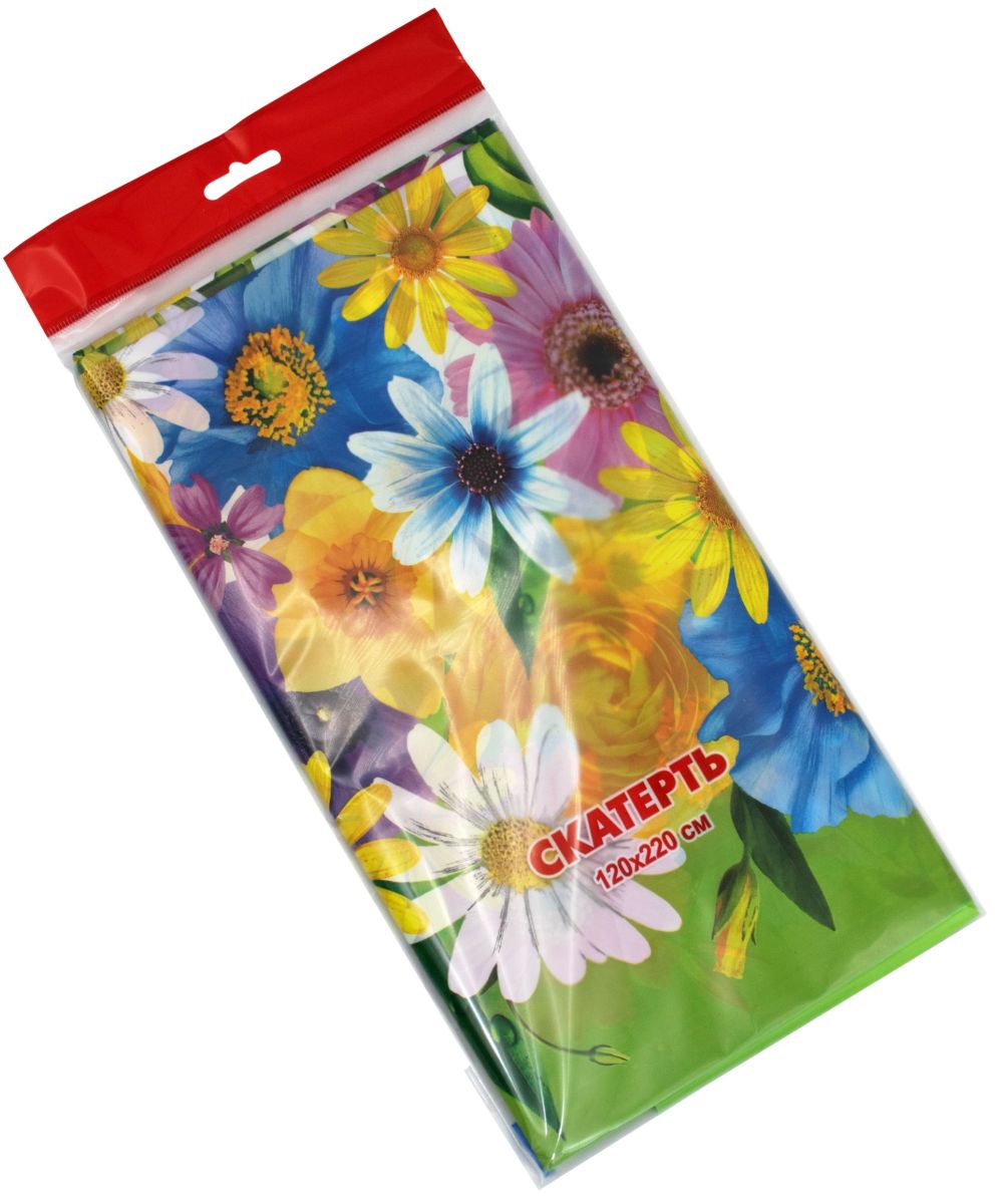 Скатерть ПВД 220х120см (Цветочная поляна) Интерпак (х1/50)